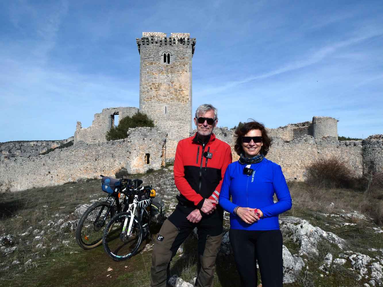 Ya en Ucero, tras un pequeño repaso a su historia, nuestros dos ciclistas nos enseñan sobrevolando su formidable fortaleza, construida excepcionalmente sobre un castro celtíbero y no encima de un castillo musulmán.