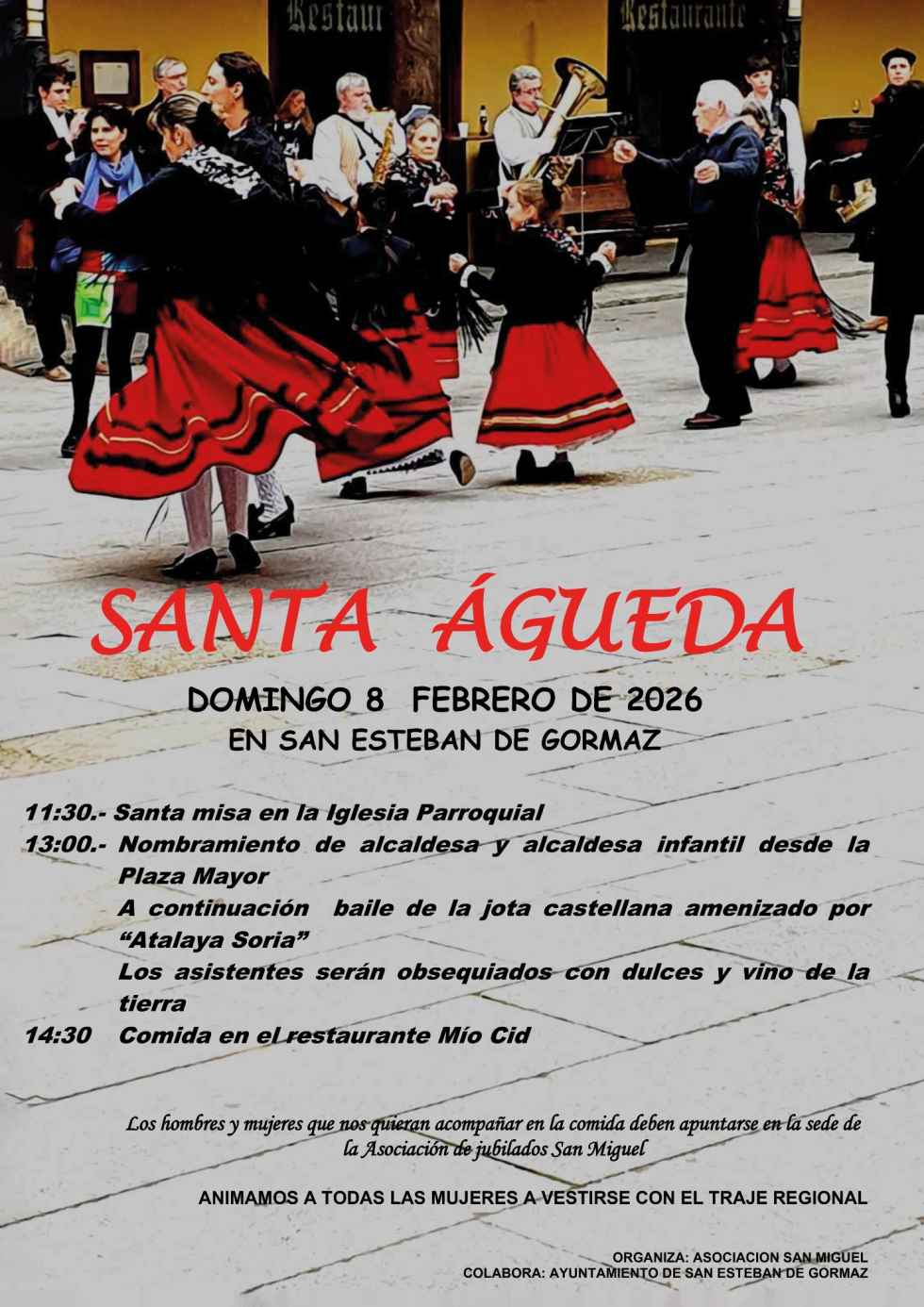 El programa incluye misa, nombramiento de alcaldesa y alcaldesa infantil, baile de la jota castellana y el mejor ambiente para compartir juntos.