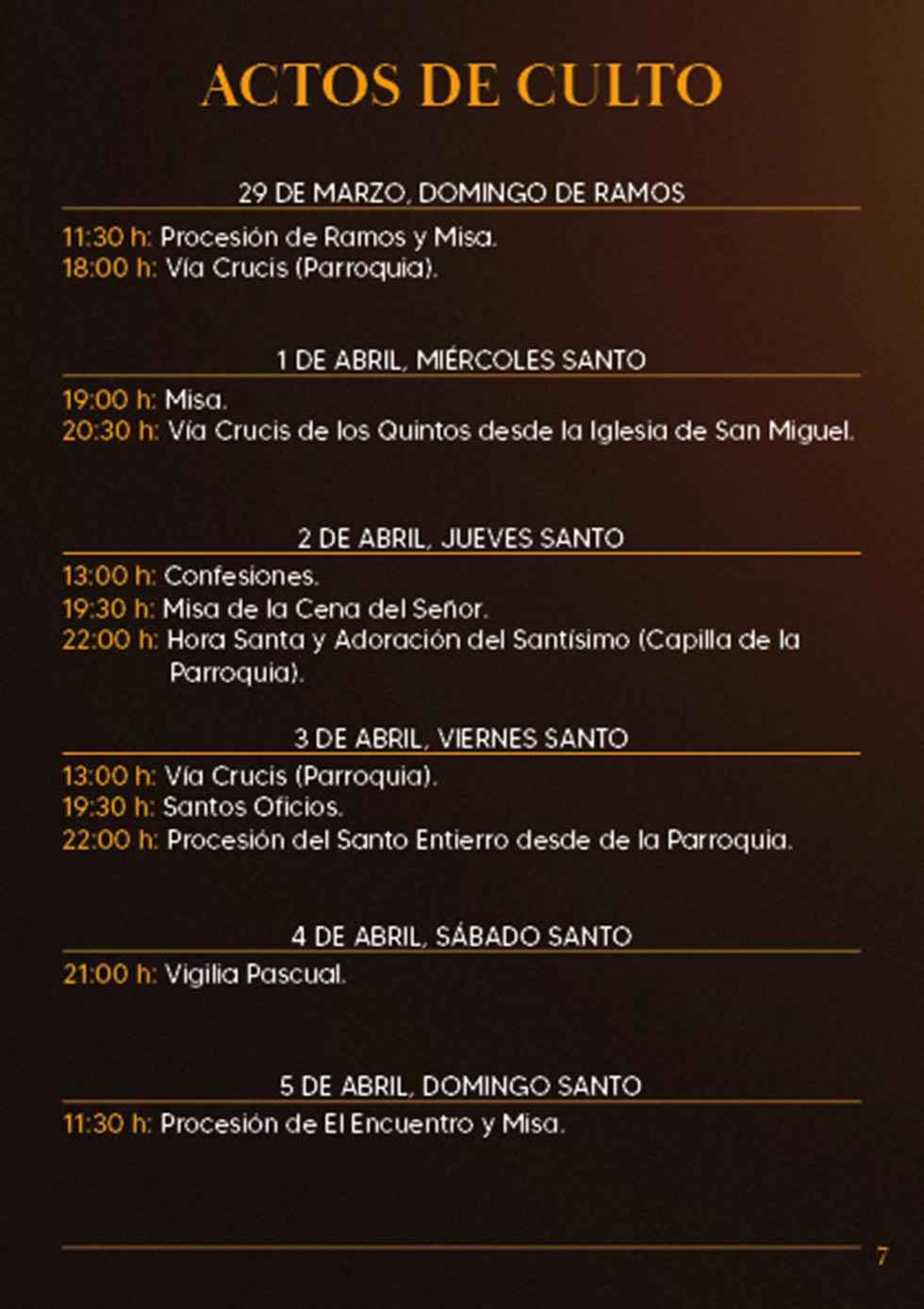 Los actos religiosos y procesiones se desarrollarán desde el 29 de marzo hasta el 5 de abril, ofreciendo momentos de recogimiento y encuentro para vecinos y visitantes.