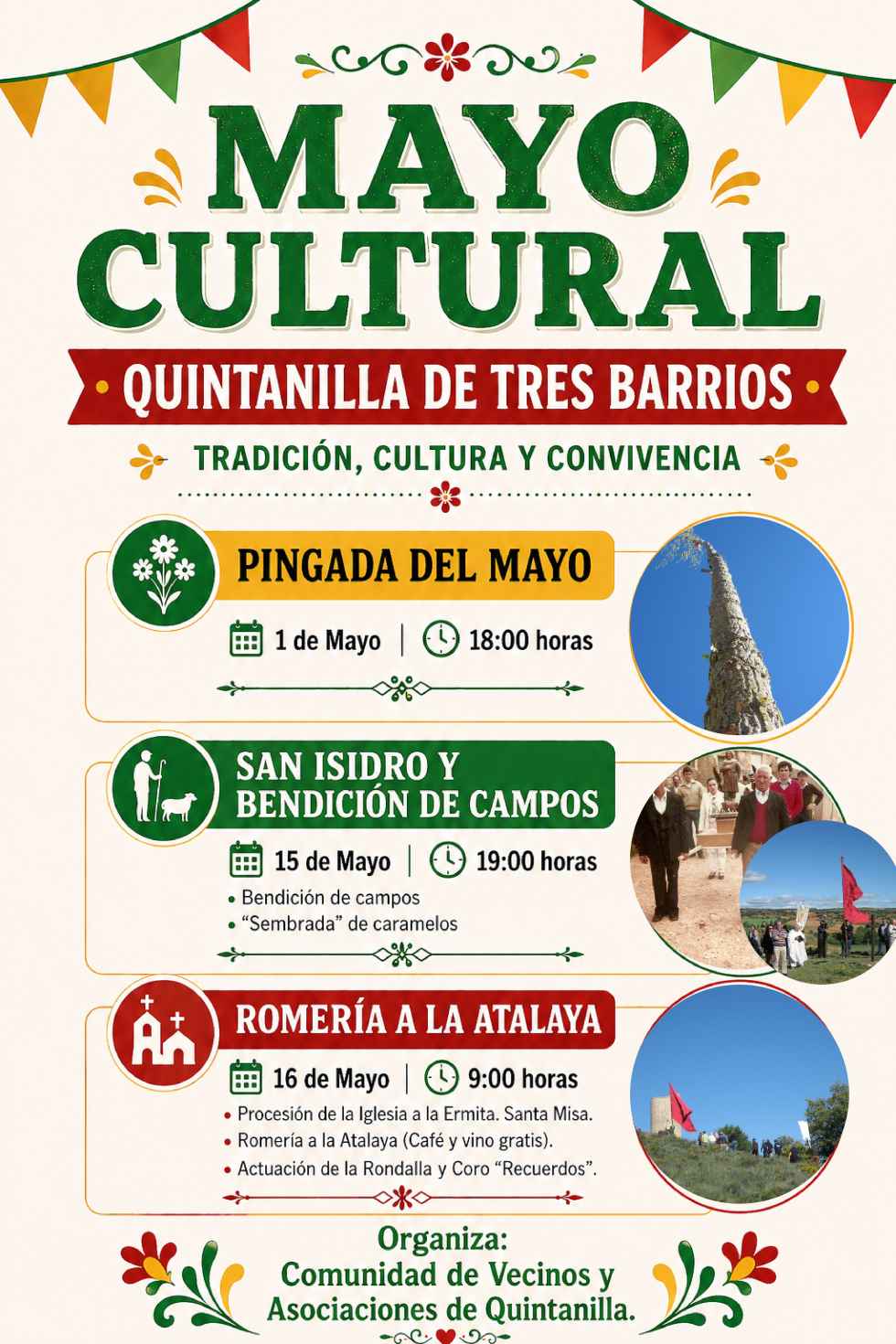 Las gentes de Quintanilla de Tres Barrios seguirán celebrando en mayo, de la mano de la Comunidad de Vecinos y Asociaciones, eventos vinculados a tradiciones de connotaciones laicas y religiosas.