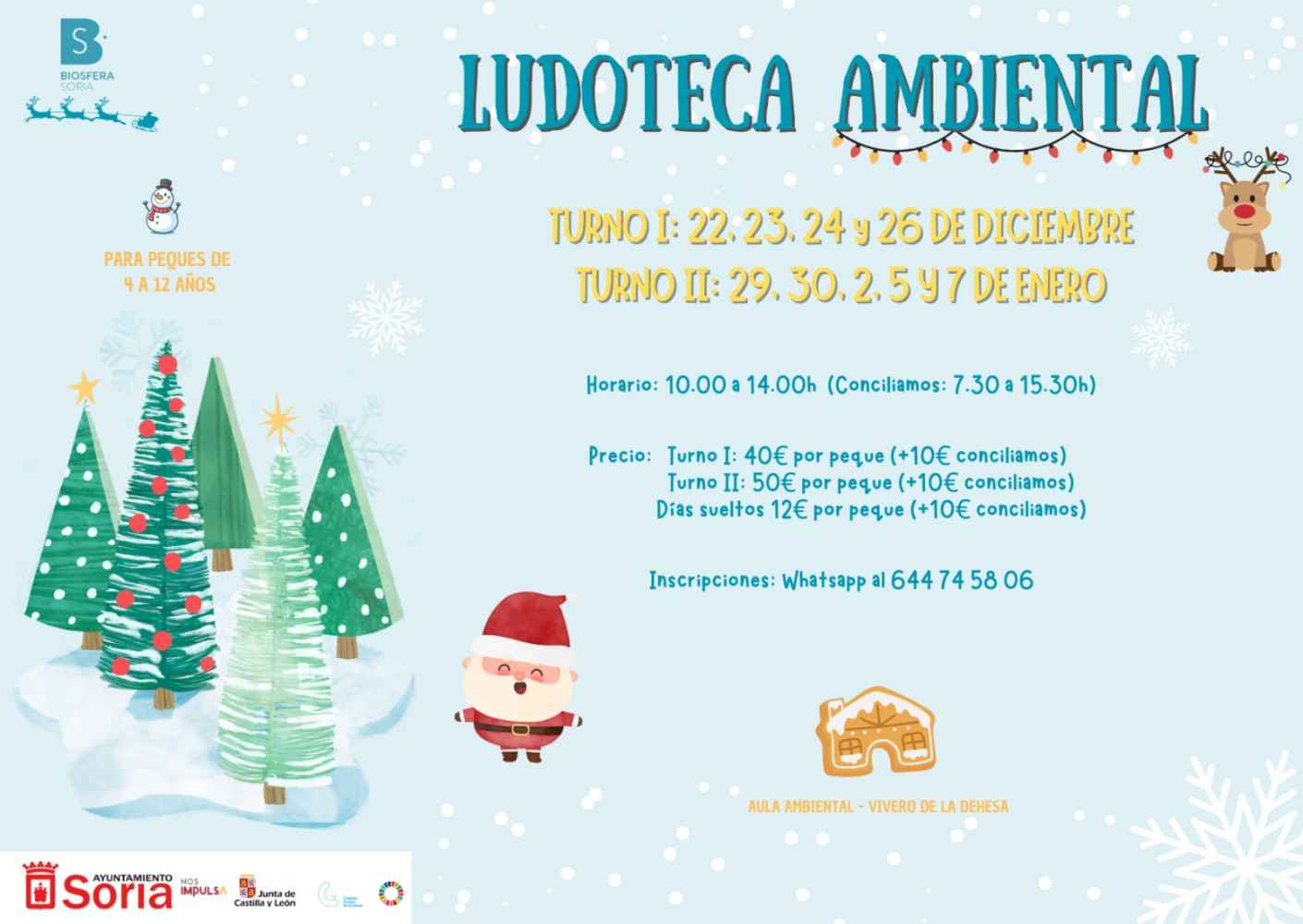 El Ayuntamiento de Soria, a través de la concejalía de Medio Ambiente y de la concejalía de Servicios Sociales, ha elaborado la programación completa de actividades navideñas dirigida a familias e infancia durante el periodo no lectivo buscando el ocio y también la conciliación.