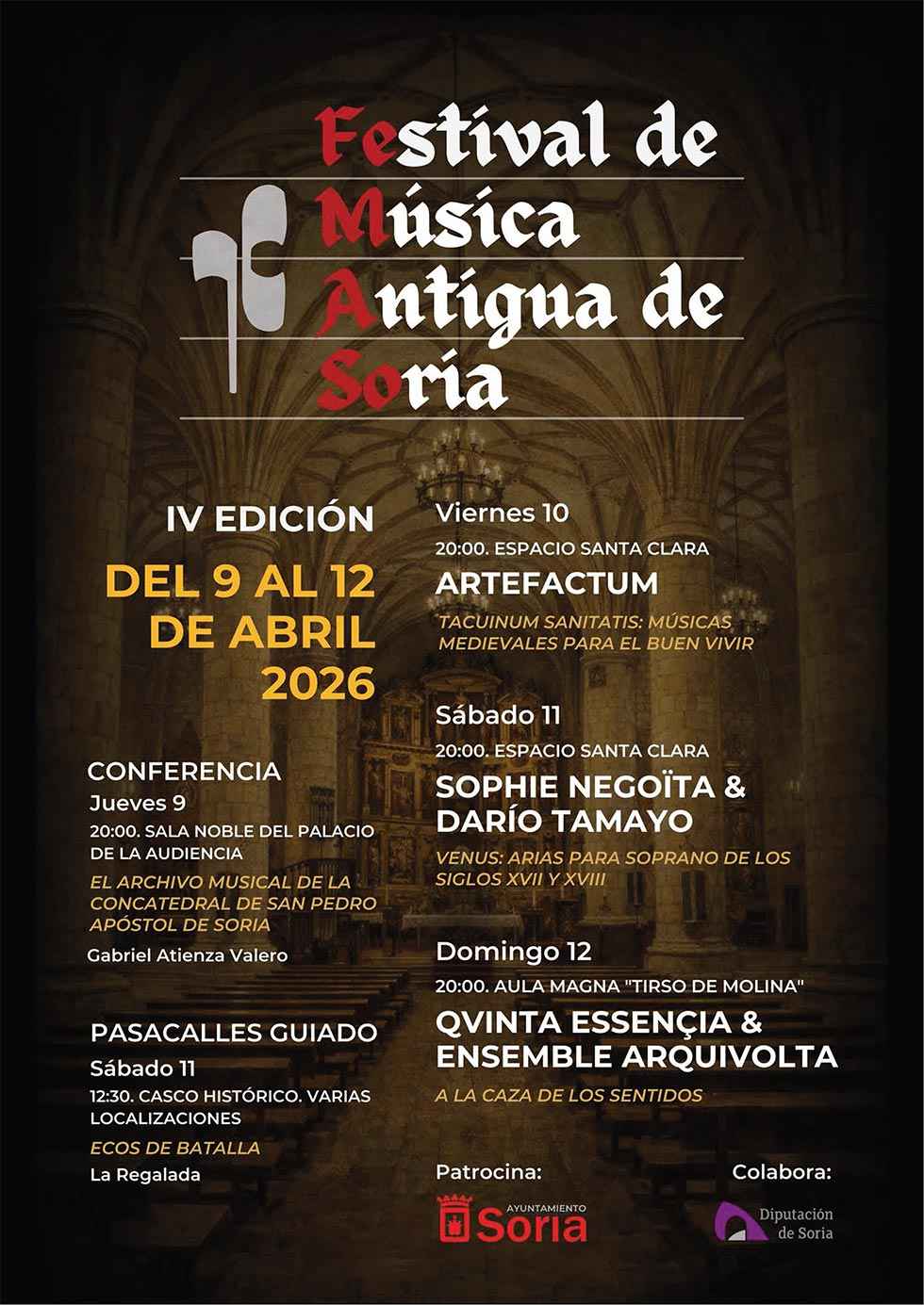 El Festival de Música Antigua de Soria celebrará su cuarta edición con importantes novedades en su programación artística y divulgativa.