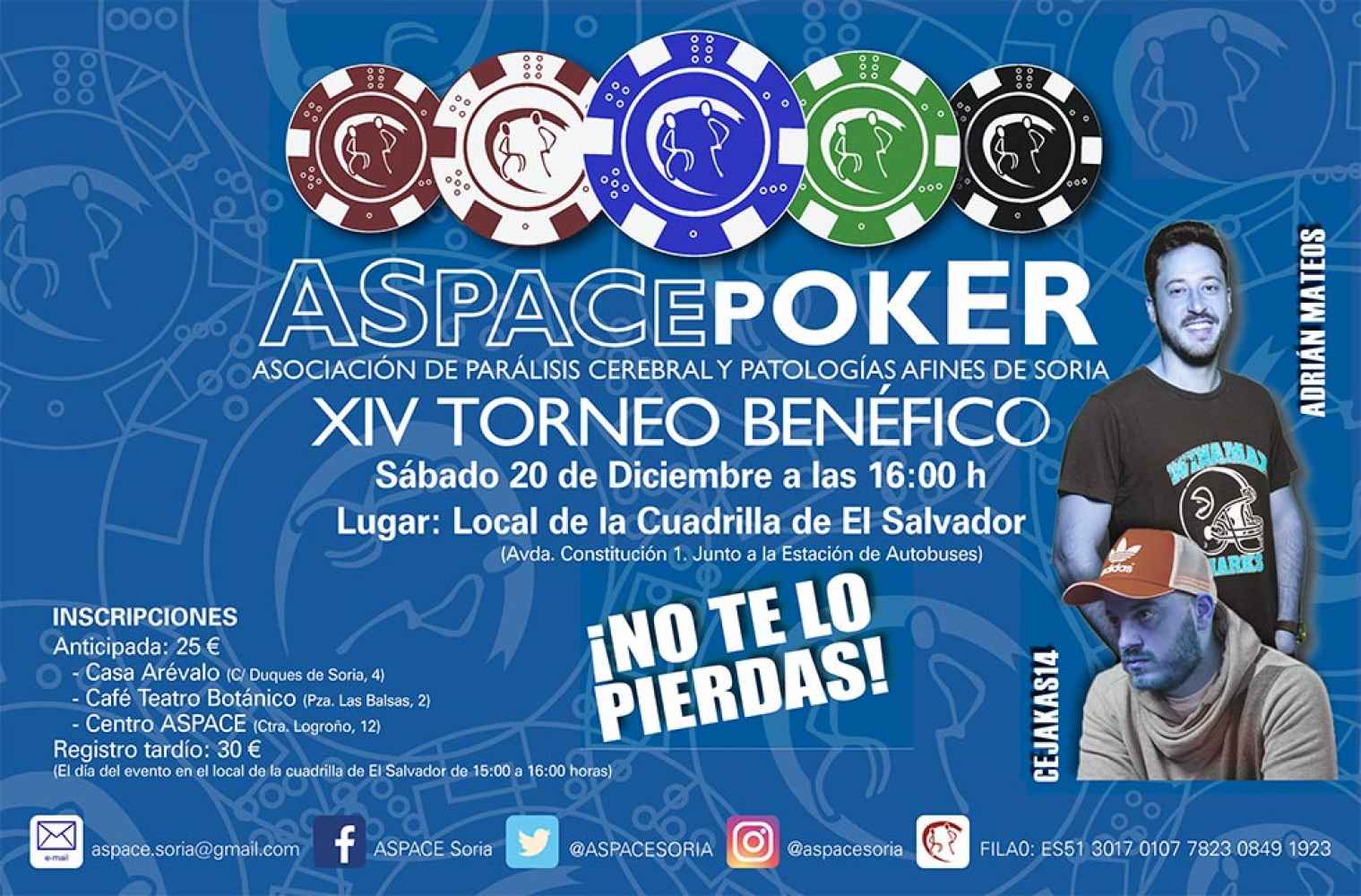 Este año ya llega a su XIV edición, apadrinado como siempre por el jugador de póker internacional, el soriano José Ángel Latorre, Cejakas 14, y además este año por Adrian Mateos.