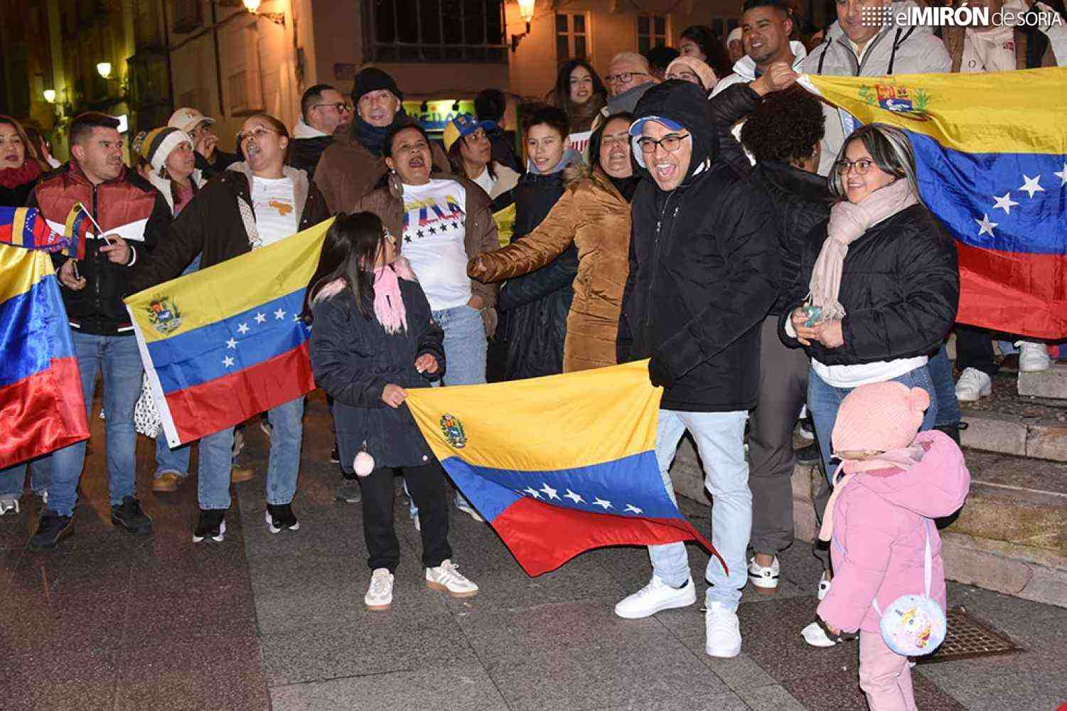 Este sábado ha sido en Soria donde medio centenar de venezolanos de una comunidad en Soria que alcanza en millar, según ha confirmado uno de los manifestantes, han salido a la calle, en la plaza de “la tarta”, para celebrar la caída del dictador.
