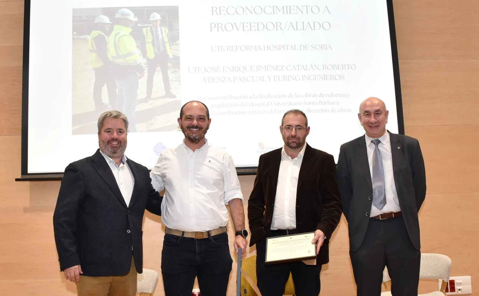 En cuanto al premio ‘Proveedor/Aliado’ ha sido para la UTE Reforma Hospital de Soria y para la UTE José Enrique Jiménez Catalán, Roberto Atienza Pascual y Euring Ingenieros, por su contribución a la finalización de las obras de reforma y ampliación del Hospital Universitario Santa Bárbara, fase II.