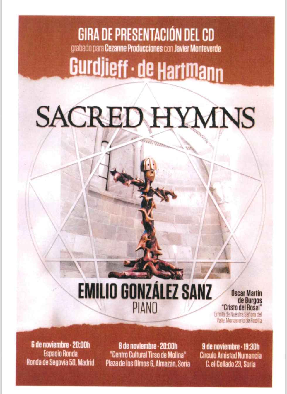 El salón Gerardo Diego del Círculo Amistad Numancia será el escenario el próximo 9 de noviembre del concierto de piano del soriano Emilio González Sanz, titulado "Sacred Hymns".