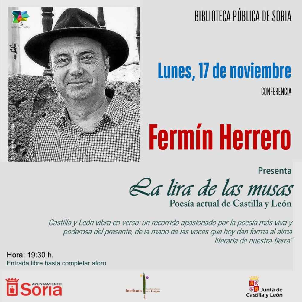 El poeta soriano Fermín Herrero ofrecerá el 17 de noviembre una conferencia, titulada “La lira de las musas: poesía actual de Castilla y León”, en la Biblioteca pública de Soria.