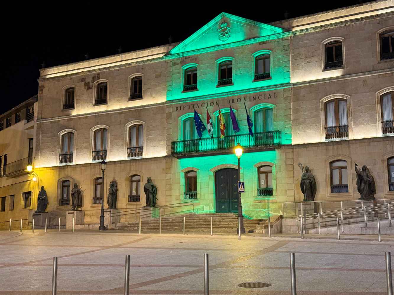 La Diputación provincial, a solicitud del Colegio Oficial de Farmacéuticos de Soria, ha iluminado anoche su fachada de color verde con motivo del Día Mundial del farmacéutico, este año bajo el lema “Piensa en salud, piensa en farmacia”.