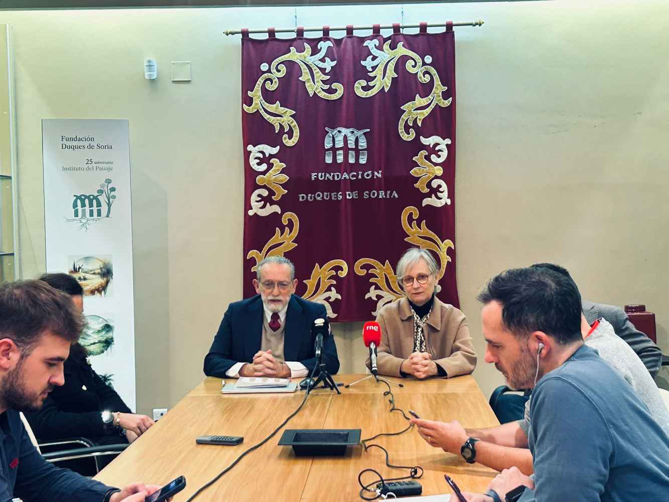 En la rueda de prensa de presentación han intervenido José María Rodríguez-Ponga, secretario general de la Fundación Duques de Soria (FDS), Graziella Fantini, directora académica del Centro Internacional Antonio Machado (CIAM) y Ángel González Sainz, director cultural del CIAM.