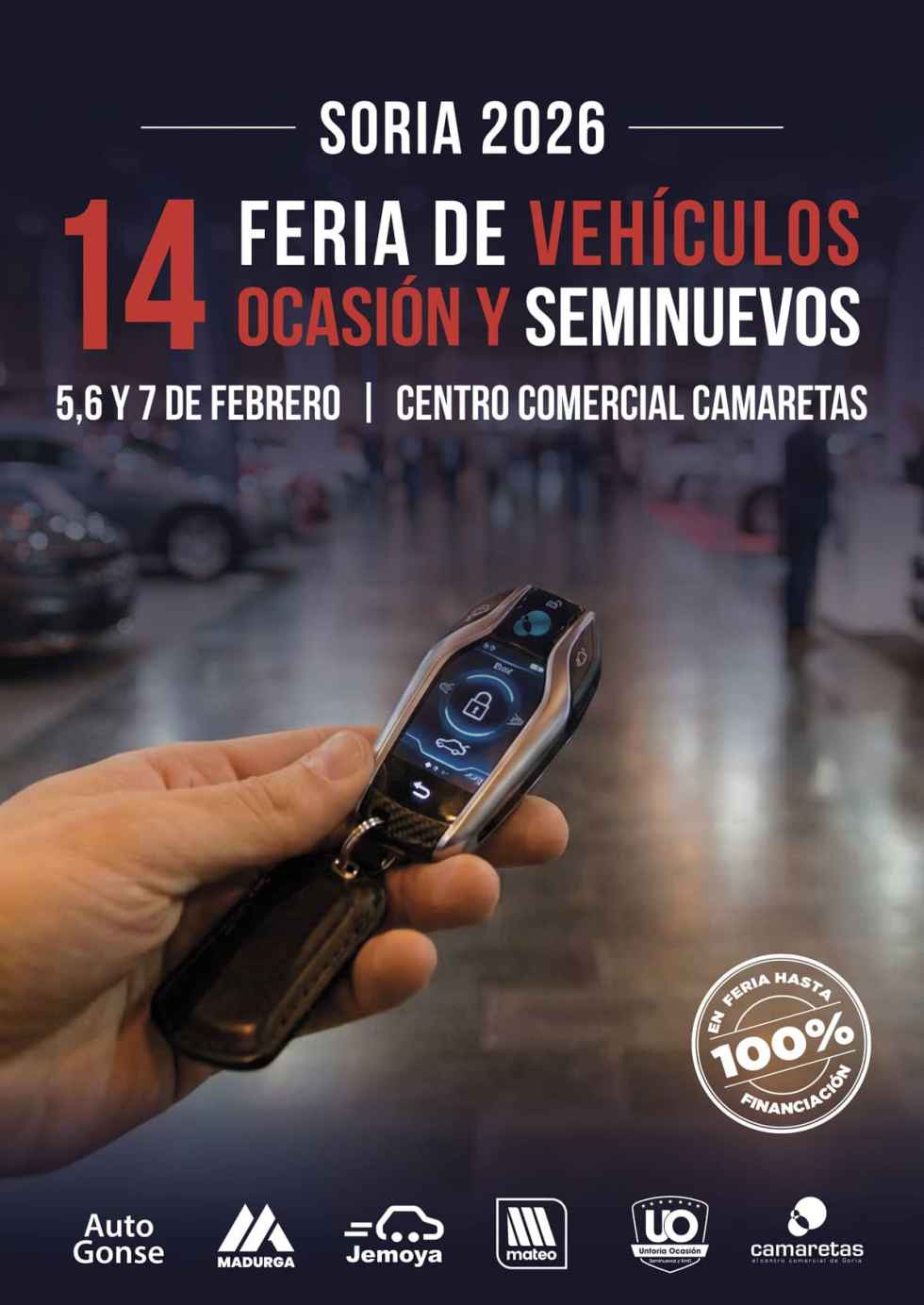 El centro comercial Camaretas acogerá, del 5 al 7 de febrero de 2026, la decimo cuarta edición de la Feria de Vehículos de Ocasión y Seminuevos de Soria.