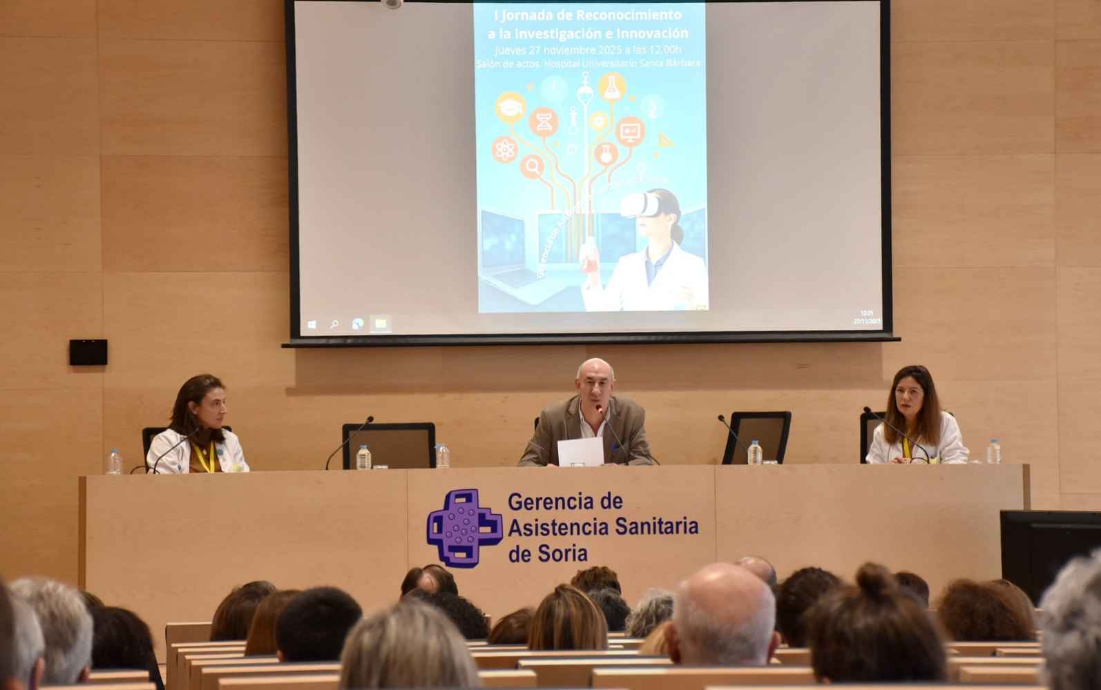 La Gerencia de Asistencia Sanitaria de Soria (GASSO) ha celebrado este jueves, en el salón de actos del Hospital Universitario Santa Bárbara de Soria, la I Jornada de Reconocimiento a la Investigación e Innovación en la que se han entregado los Premios 2025 en sus cinco categorías: Proyecto de Investigación, Publicación Científica, Comunicación Científica, Trabajo de Investigación en Formación Especializada e Innovación y Mejora.