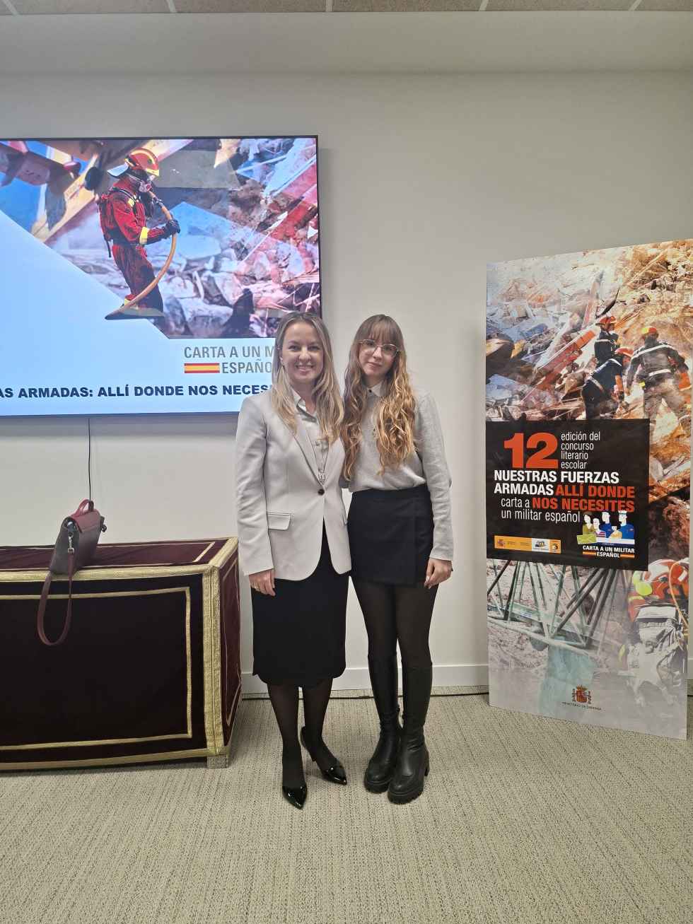 De entre todas las cartas ganadoras de dichos centros destacó la de Veronika, en la que hacía un repaso de la intervención de las Fuerzas Armadas en diferentes escenarios, tanto en conflictos bélicos como en situaciones de emergencias y catástrofes naturales como la pasada DANA, además de relatar su experiencia en primera persona en el conflicto que vive actualmente su país.