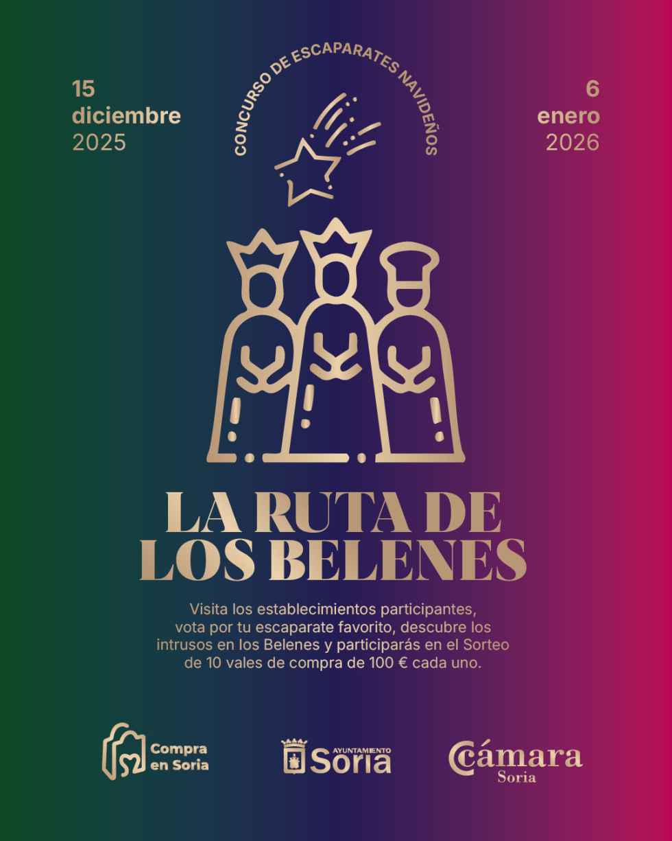 El Ayuntamiento de Soria y la Cámara de Comercio de Soria han puesto en marcha una nueva edición de la campaña de promoción comercial La Ruta de los Belenes, una iniciativa ya consolidada que, cada Navidad, convierte los escaparates de la ciudad en un recorrido lleno de creatividad, tradición y atractivo turístico.