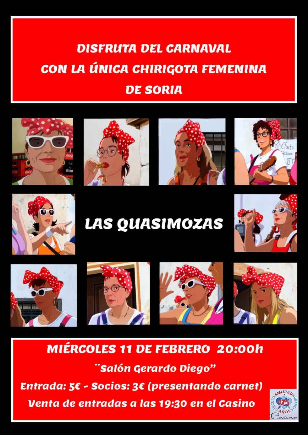 Llegan los carnavales a Soria y en la víspera “Las Quasimozas” repasarán la actualidad soriana y española en el Casino Amistad Numancia.
