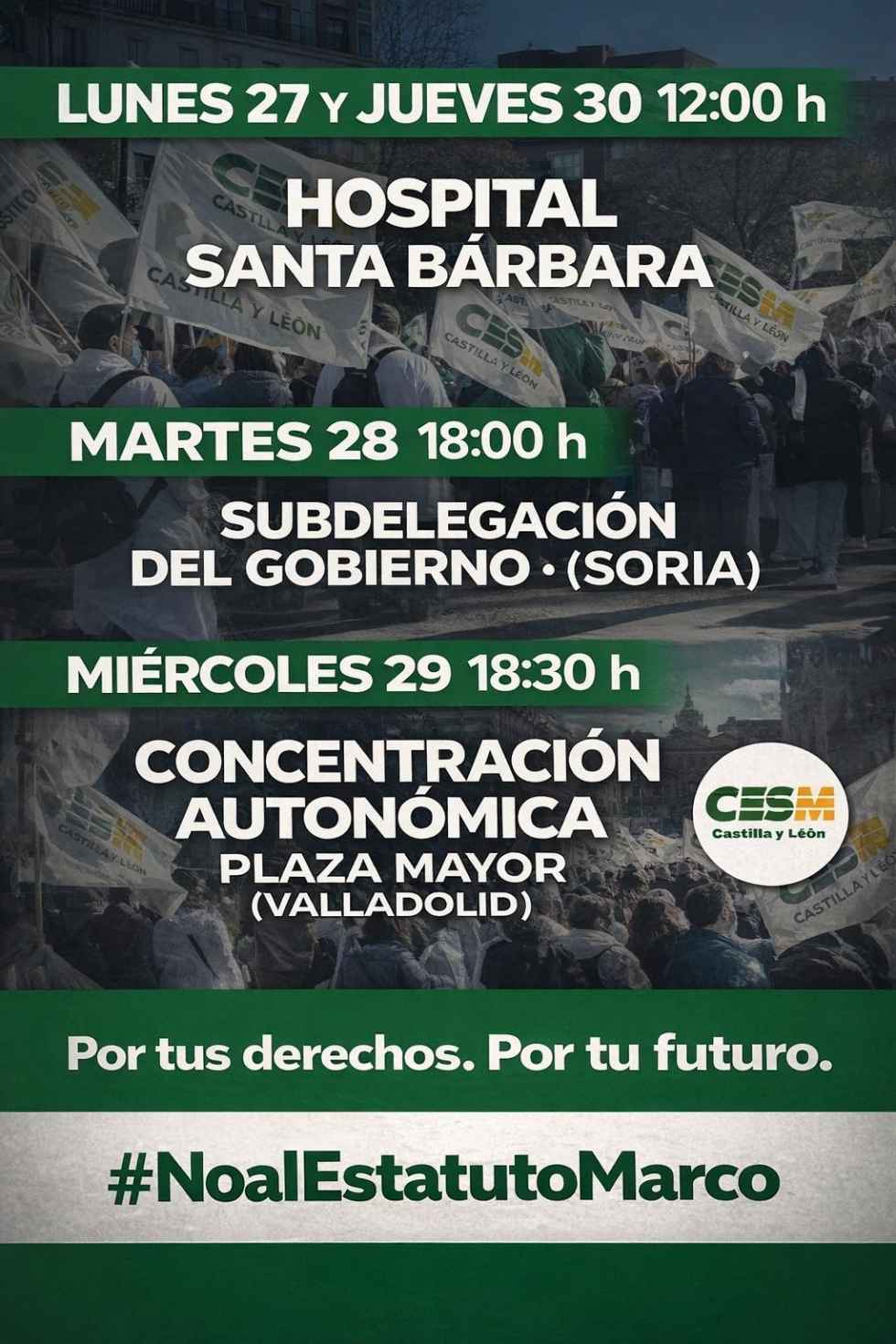 Los médicos de la red pública de hospitales de Castilla y León, y con ello de Soria, han empezado este lunes una nueva semana de huelga para reclamar un estatuto marco propio al Ministerio de Sanidad.
