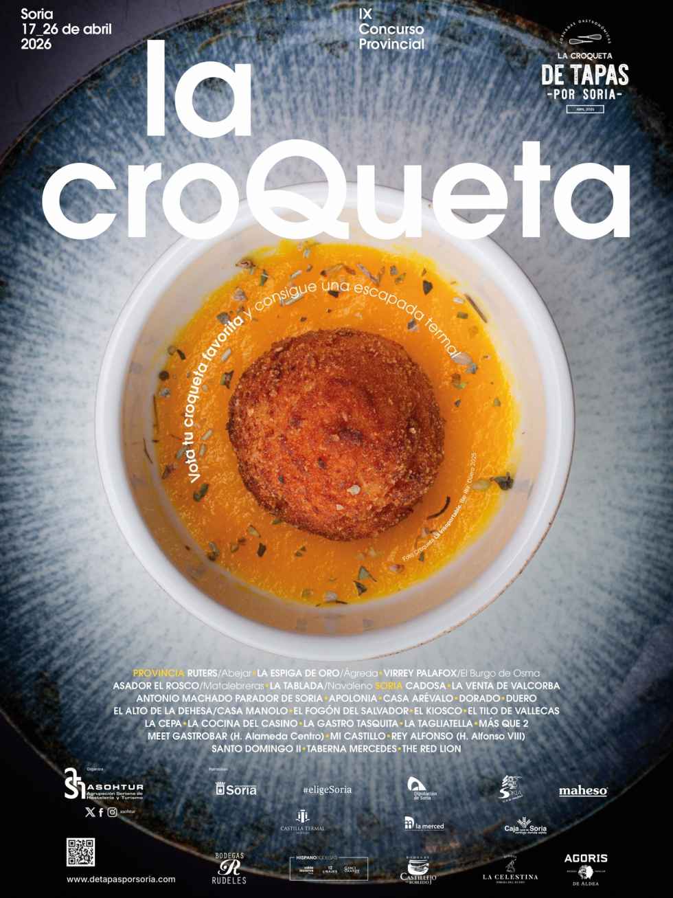 Del 17 al 26 de abrir se celebrará De Tapas por Soria, que permitirá degustar hasta 27 formas de elaborar una croqueta, en sendos establecimientos de Soria y provincia.
