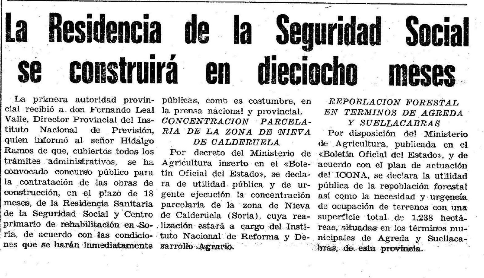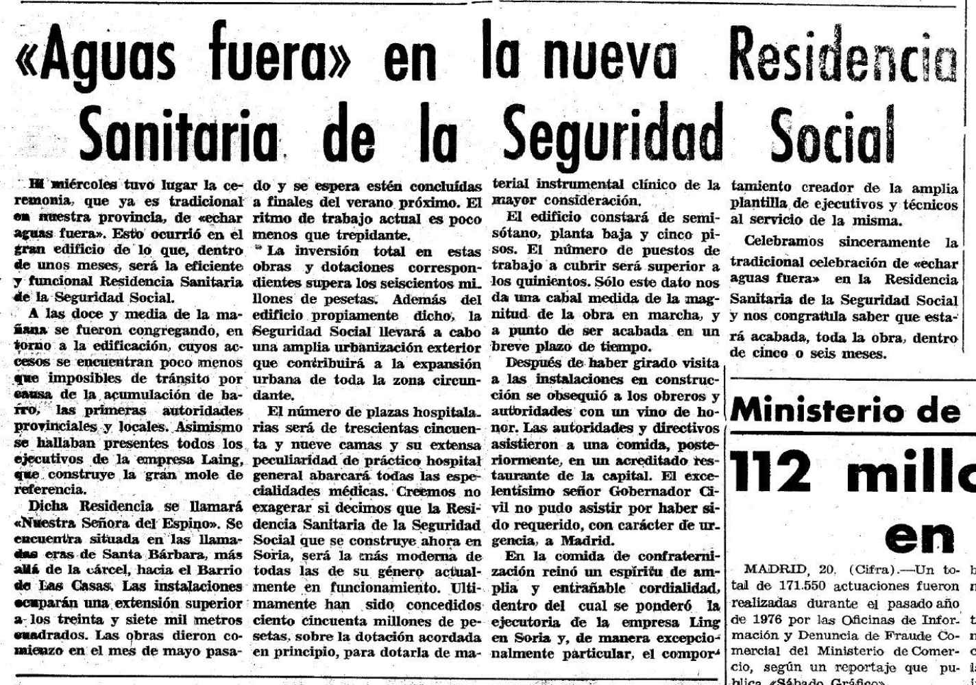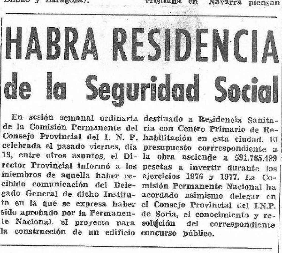 La prensa de la época confirmaba en 1976 la aprobación del proyecto para la construcción de un edificio en Soria destinado a residencia sanitaria con centro primario de rehabilitación.