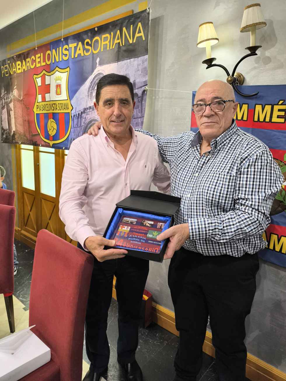 En representación del F.C. Barcelona ha asistido el ex jugador Onesimo Sanchez y también ha acompañado a la peña, en representación del Ayuntamiento de Soria, el concejal de Industria, Empleo e Innovación, Gregorio García Sacristán.