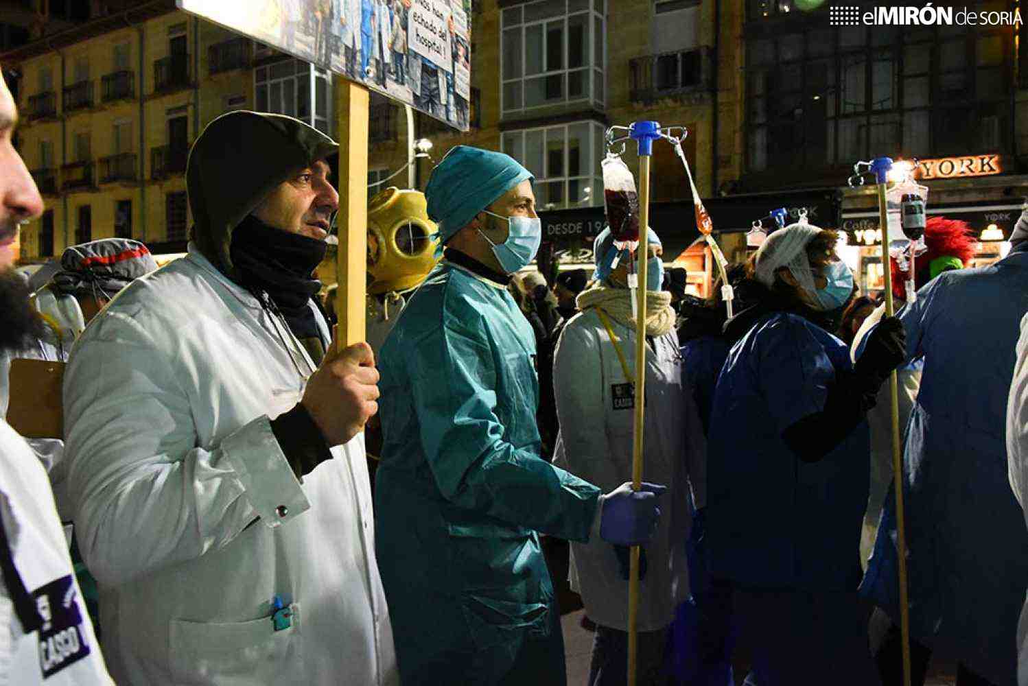 El desfile de disfraces de carnaval en Soria también tuvo algún episodio reivindicativo de la mano de la asociación del Casco Viejo de la ciudad, que reclamó la continuidad y mejora del hospital Virgen del Mirón.