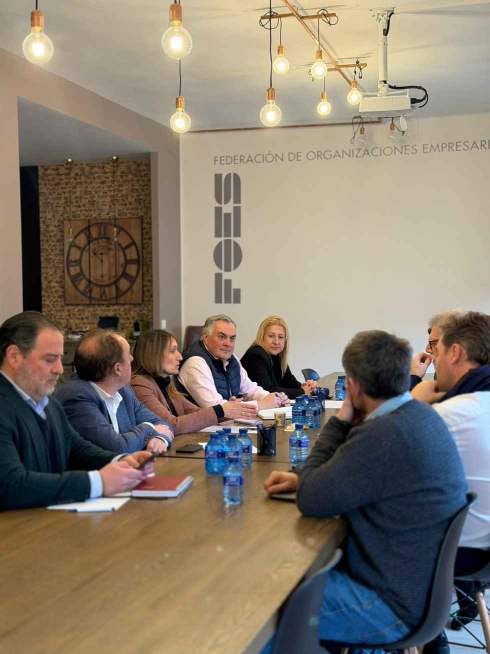 Los candidatos del Partido Popular por Soria a las Cortes regionales, Rocío Lucas y José Damían Ferrero, acompañados del presidente popular, Benito Serrano, mantuvieron ayer una reunión de trabajo con los responsables de la Federación de Organizaciones Empresariales Sorianas (FOES) para compartir análisis sobre la situación económica provincial y las prioridades del tejido empresarial: detectar oportunidades, impulsar actividad y fortalecer la colaboración.