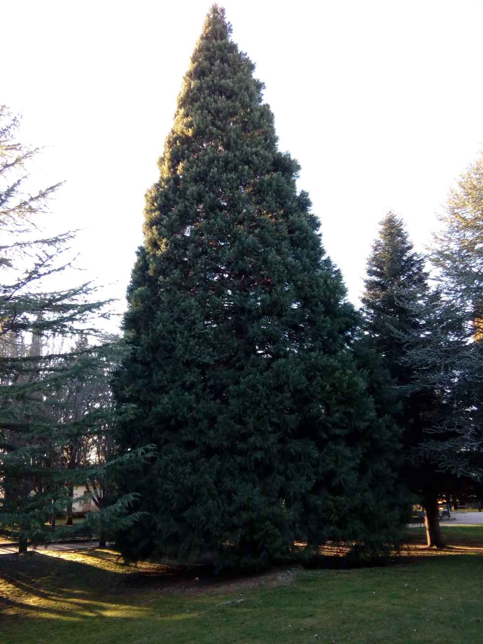 Junto a la entrada del Parque de la Dehesa o Alameda de Cervantes, en Soria, hay dos altas secuoyas gigantes, una más a medio centenar de metros y otras dos, de mayor porte, entre la fuente de piedra y el invernadero.