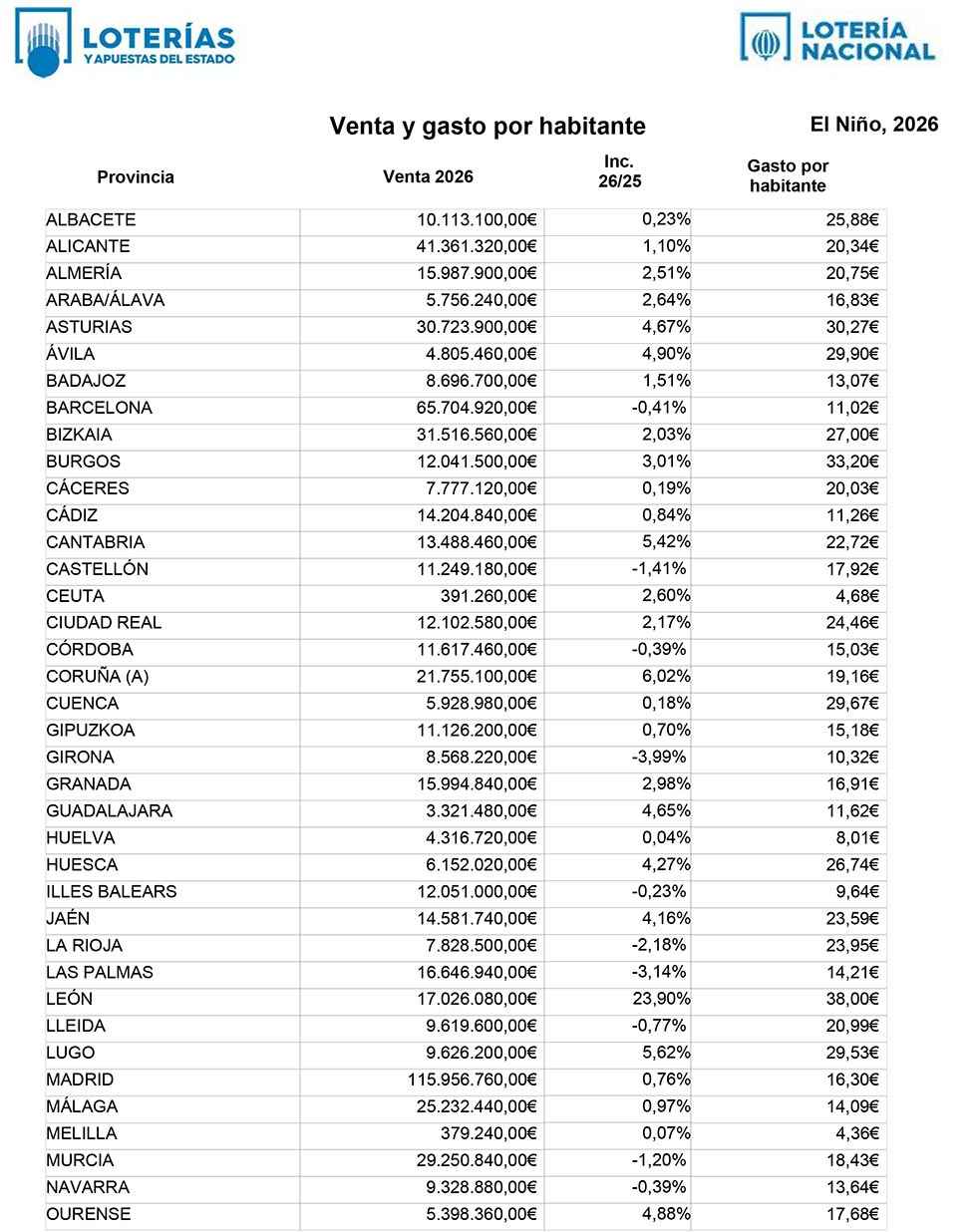 Soria vuelve a encabezar gasto por habitante en sorteo de "El Niño"