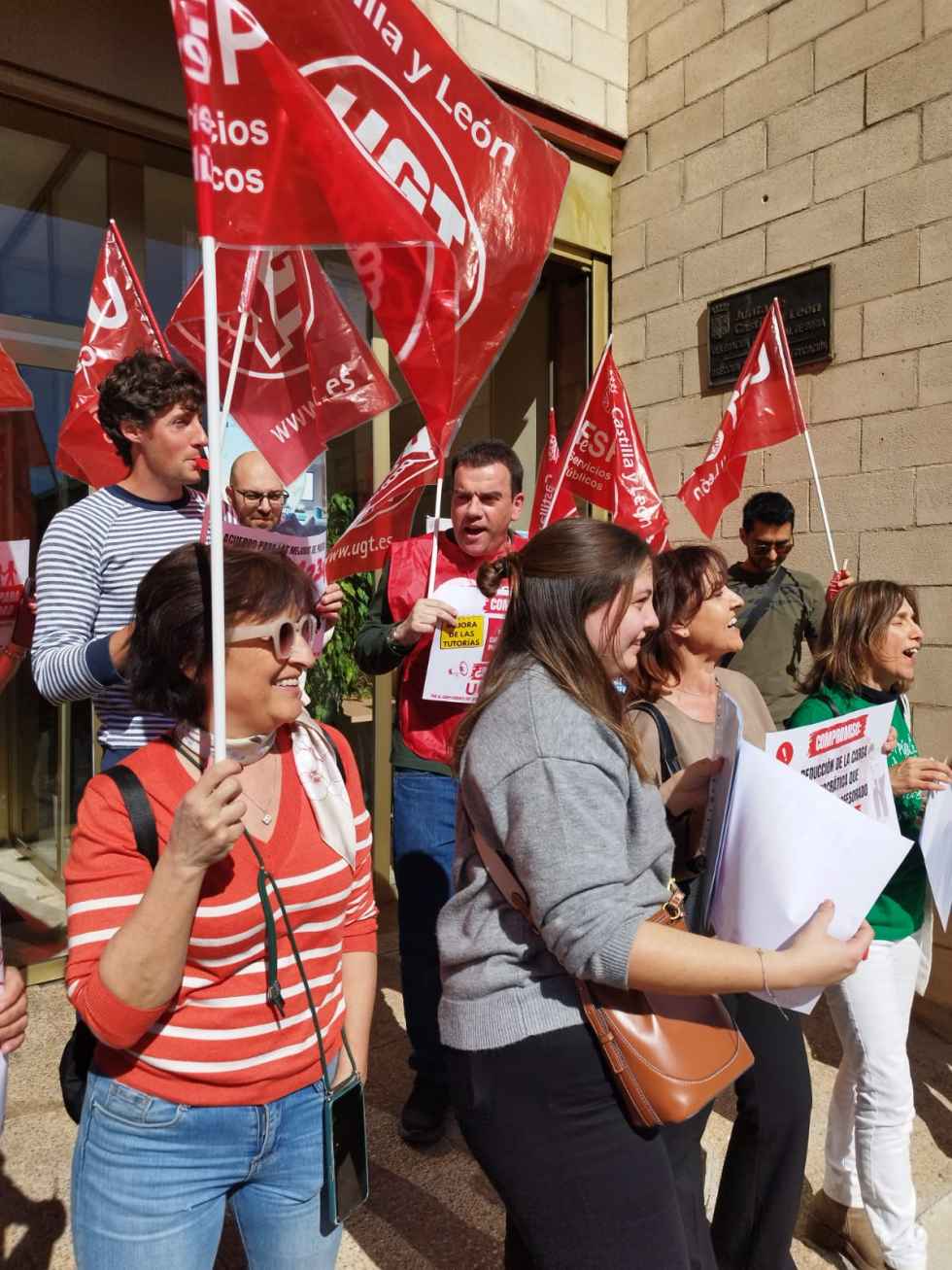 UGT se ha concentrado a las puertas de la dirección provincial de Educación en Soria para denunciar reuniones vacías con la Consejería, a la que ha acusado de bloquear el acuerdo docente.
