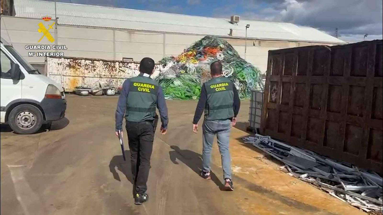 La Guardia Civil encontró en su interior 3.800 kilógramos de cable de cobre que acababan de sustraer de la fotovoltaica del municipio de Alange (Badajoz), vehículo que abandonaron al ser sorprendidos por los agentes.